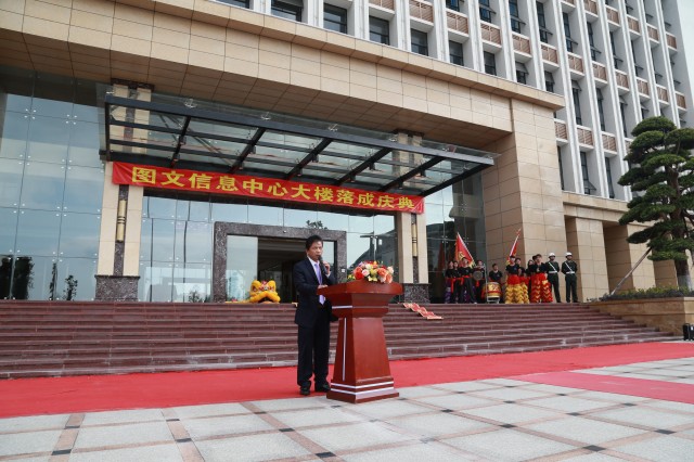 图文信息中心大楼落成庆典仪式在精彩的醒狮表演中拉开序幕,董事长欧阳少林为醒狮点睛并致辞。他对大楼顺利竣工并投入使用表示衷心的祝贺,对参与大楼的设计、施工的建设者们、相关领导、老师和同学们表示衷心的感谢并致以崇高的敬意,对百忙中莅临的各位来宾表示诚挚祝福和感谢。同时他强调,学院图文信息中心的建设,承载着华夏人做大做强华夏教育的梦想,将进一步扩大学院办学资源,提升办学竞争力。它不仅为校园增添了一道亮丽的风景,成为华夏的一座标志性建筑,也极大地改善了办学条件,改善了教科研活动场所、提升了图书资源建设水平。这是学院发展历程中具有里程碑意义的大事,是全体师生们的一件大喜事。他相信在华夏人艰苦卓绝的奋斗精神和求精务实、团结高效的工作作风下,华夏教育品牌一定会在南粤大地璀璨夺目。