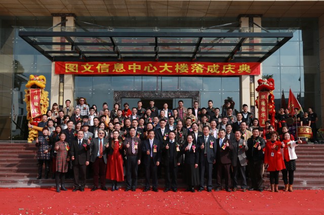 随后,学院主要领导在师生和嘉宾的见证下举行了隆重的剪彩仪式,并与嘉宾、全体中层干部在图文信息中心大楼前合影留念。