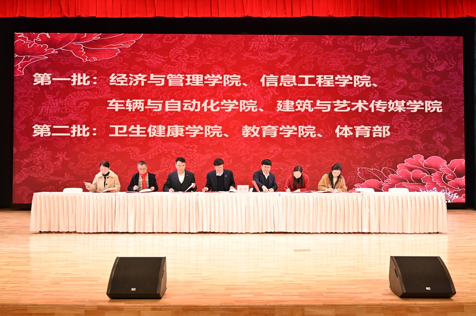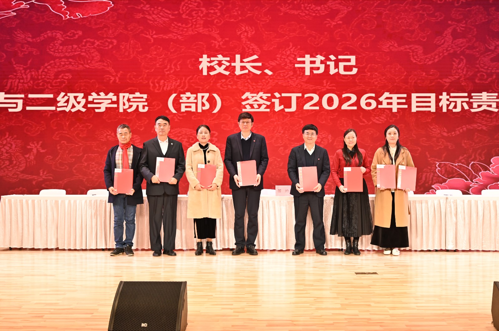 校长、书记分两批与各二级学院(部)签订了2026年目标责任书。