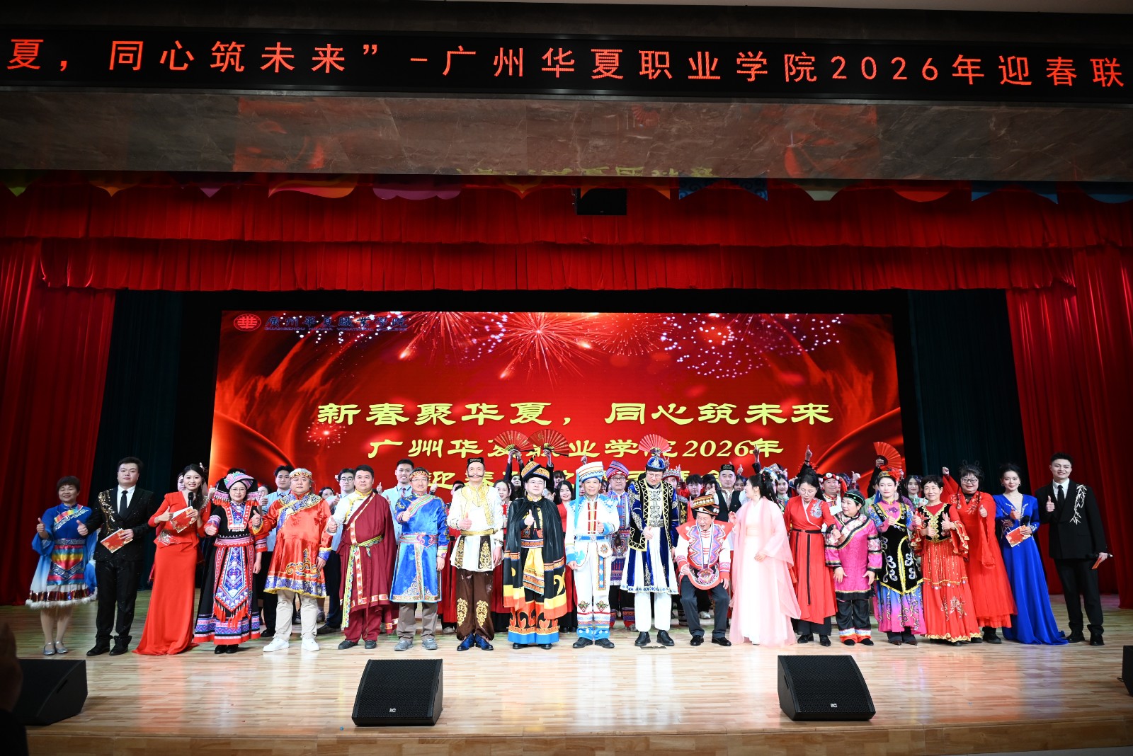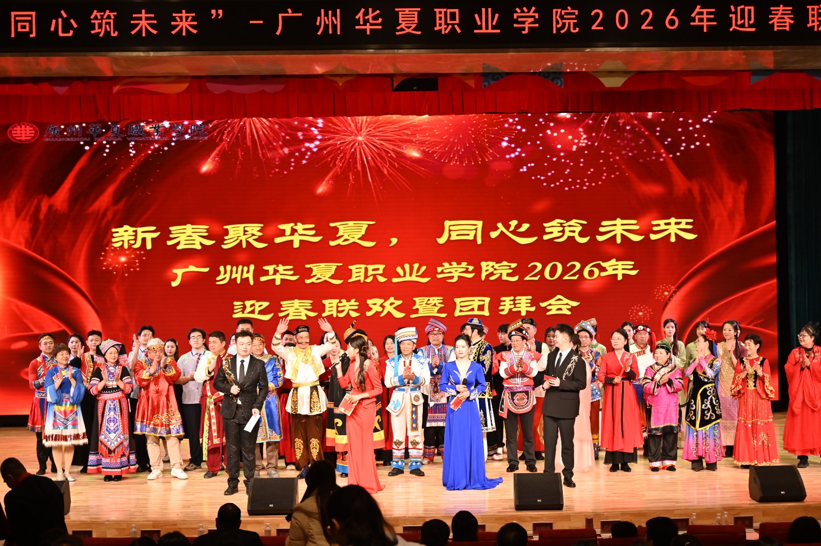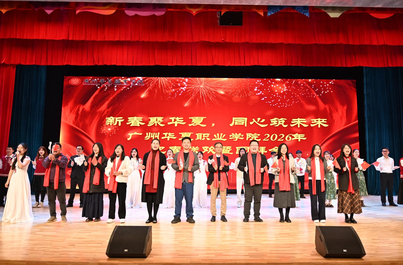 在热烈欢快的氛围中,广州华夏职业学院 2026 年迎新春联欢会精彩开幕,千余名教职工欢聚一堂,共同迎接新春的到来。