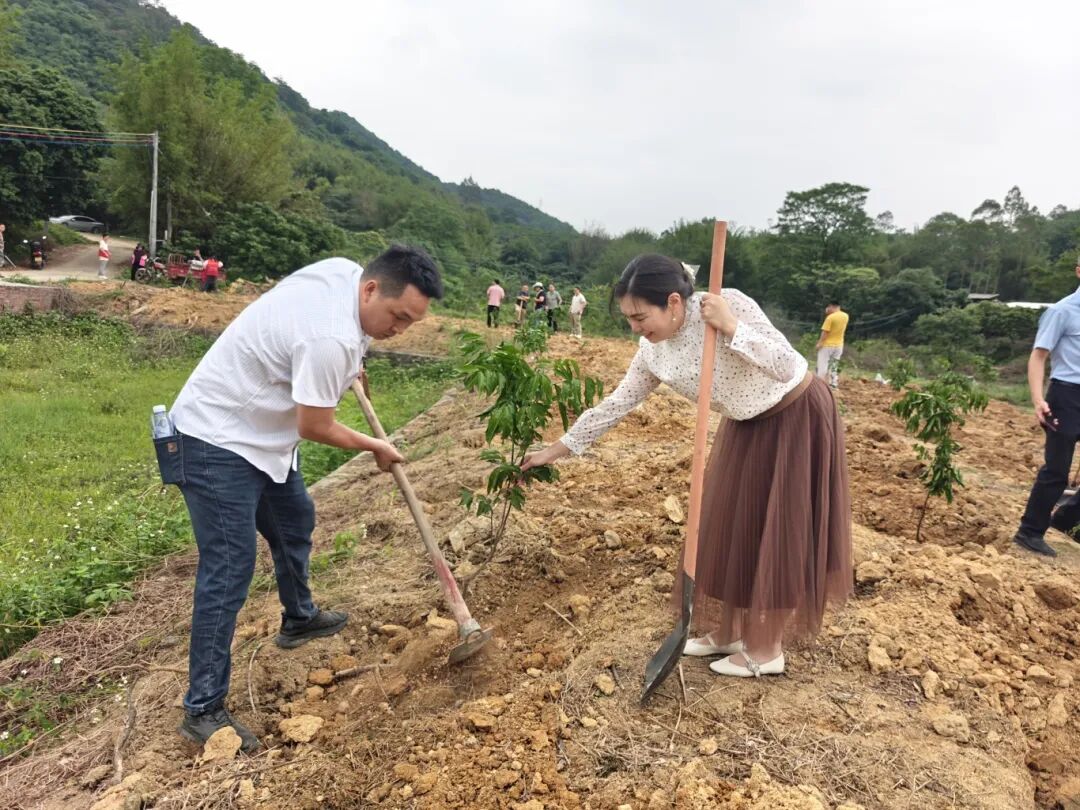 在这场绿色行动中,从化区人大代表、广州华夏职业学院副校长欧咏梅率先垂范、主动作为。她深入石联村了解村情、倾听民声,积极牵线搭桥,发动广州华夏职业学院向石联村捐种500株黄皮树苗,并带头参与植树活动。这批树苗兼具生态美化与产业增收双重价值,为石联村推进绿美乡村建设、助力“百千万工程”注入了绿色动能。